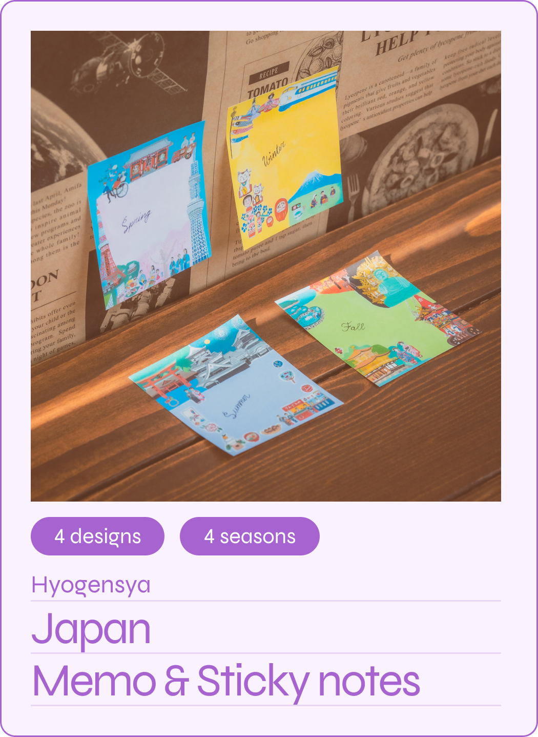 Camouflaged as a Japan travel guide, this little book houses memo pads and sticky notes with art by Ai Okino. Just the designs themselves will take you on a Japan round trip, with illustrations depicting Tokyo’s sky tree, Mt. Fuji in Shizuoka, Takayama festival floats and Himeji castle.