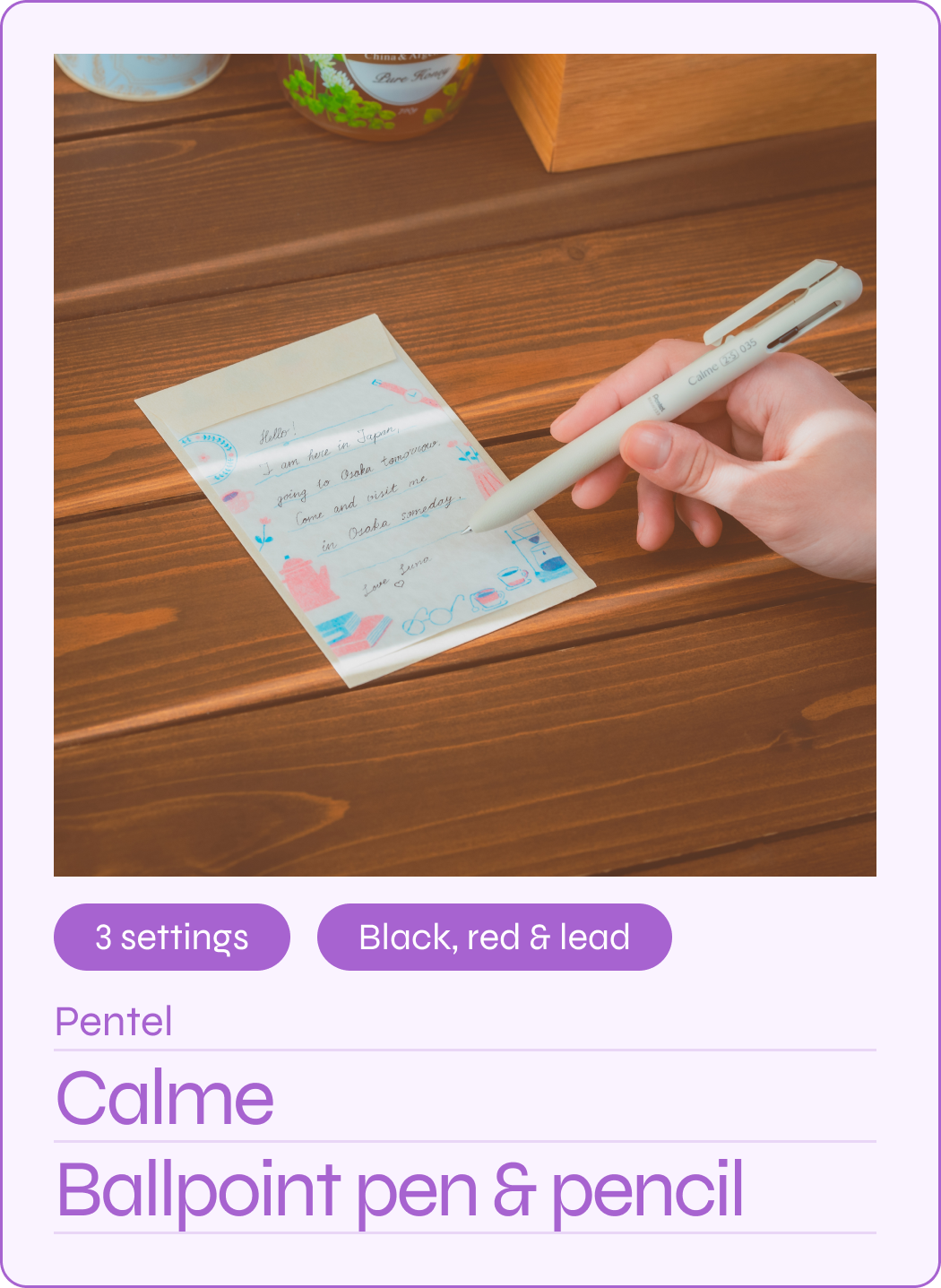 This 3 in 1 pen is almost too good to be true! It’s actually a pen/pencil hybrid, with 2 pen nibs of black & red 0.35mm and a 0.3mm mechanical pencil. It’s super versatile for sketching, note taking and has all you need when you’re on the go.