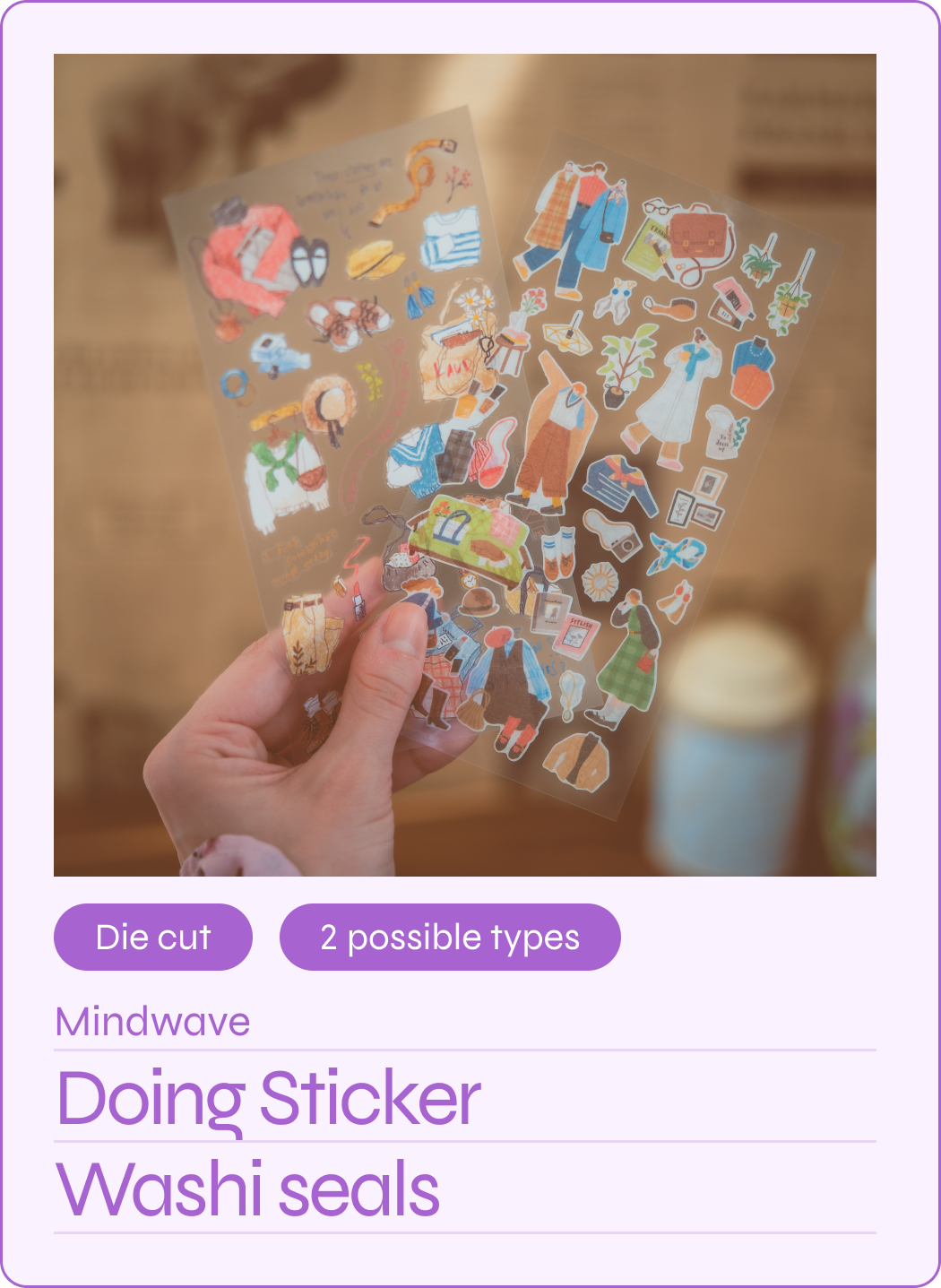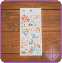 A transparent vinyl sticker set with a matte surface. The details are designed as ballpoint pen drawings which match very nicely with handwriting, when you place them, it looks like your own drawing.