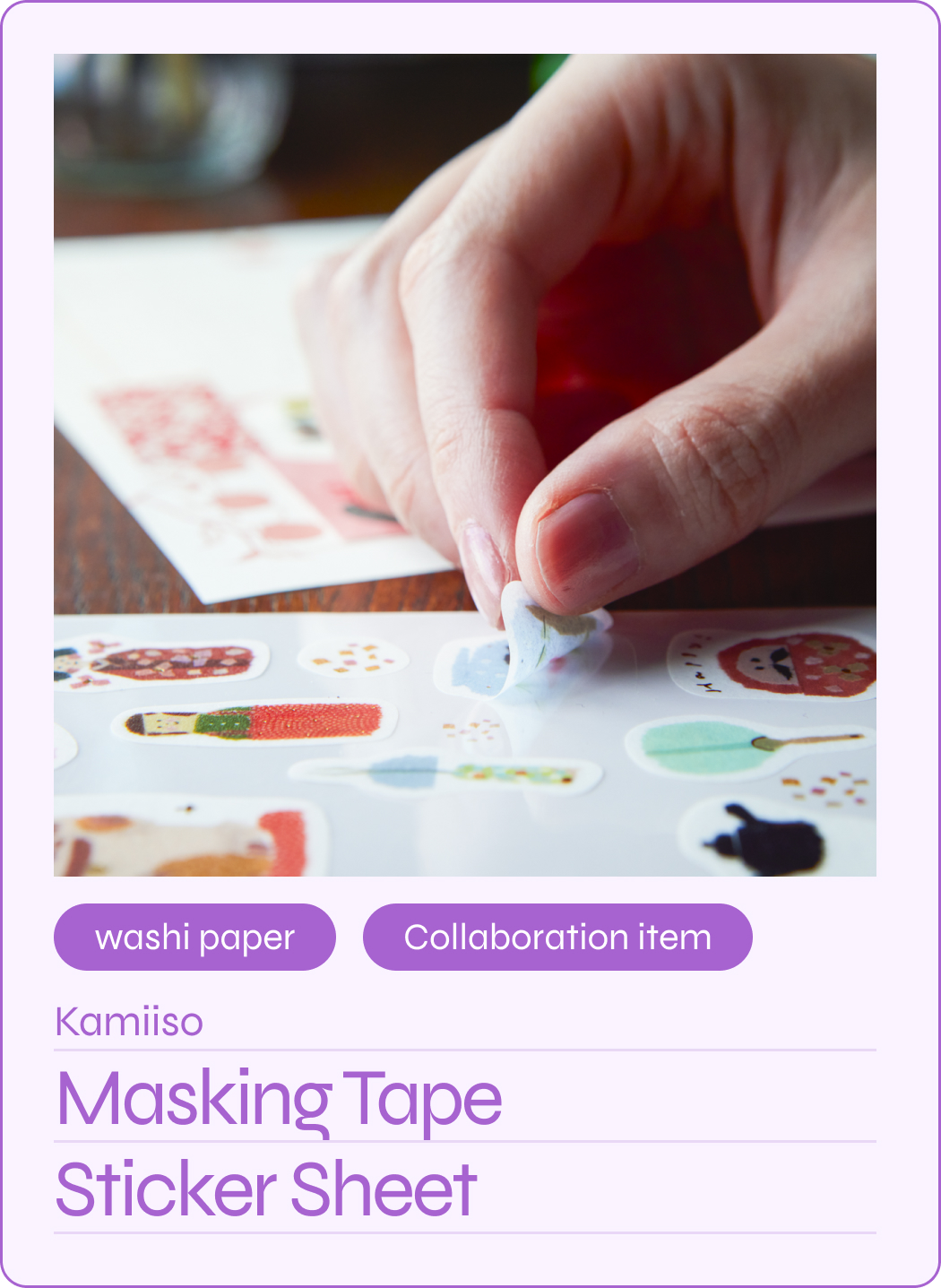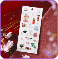This sticker sheet is not only made with washi paper, the designs themselves were created using washi tape! Artist Miki Tamura may possibly have the best job in the world, creating unique art layering washi tape for a warm look that can only be produced by handcraft.