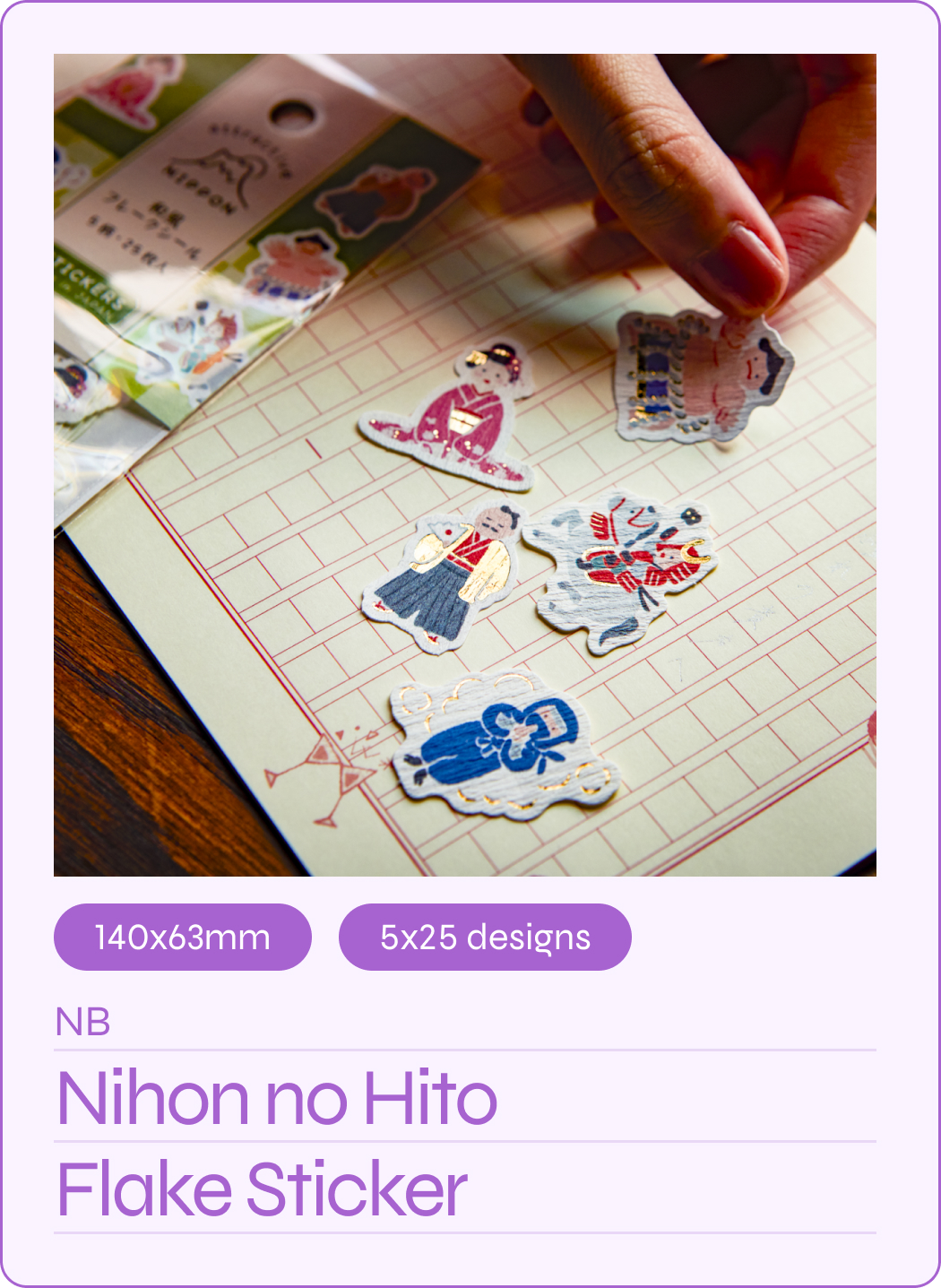 Cute stickers made with Japanese crepe paper inspired by classical Japanese archetypes. They include a samurai, ninja, maiko, lord and sumo wrestler in a fun art style.