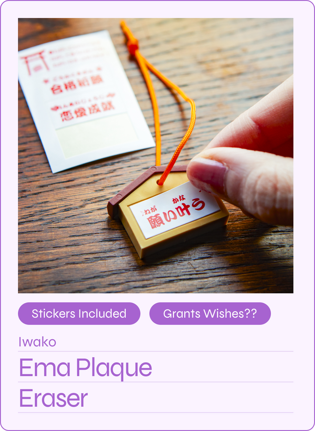 Ema are wooden plaques offered at shrines when making a wish or as a token of gratitude for wishes that have come true.
