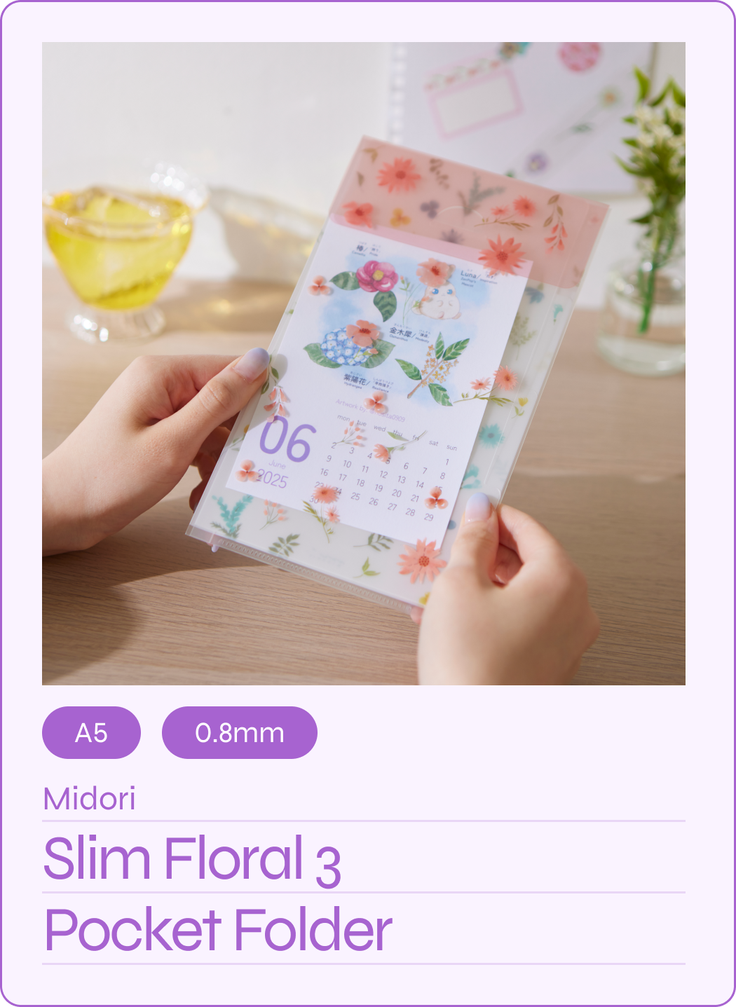 The beauty of this folder is only surpassed by its convenience. Designed for stationery folks on the go, it has 3 folders for anything from stickers, A4 trifolded paper, tickets, passports, masks and smaller stationery items like pens and rulers.