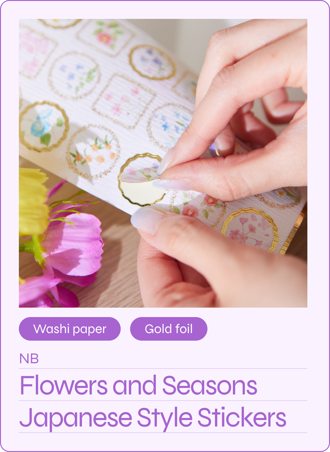 Gorgeous washi paper is the base of this sticker sheet. The texture feels hand crafted and really amplifies the beauty of the floral designs on the stickers. If that wasn’t enough, each design is surrounded by Japanese gold foil.