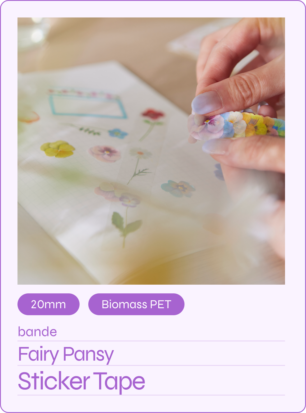 Don’t mistake this for a roll of washi tape, this is a roll of translucent stickers featuring pansies in fairy-tale-like colors. There are 150 pieces so don’t be afraid to use them.