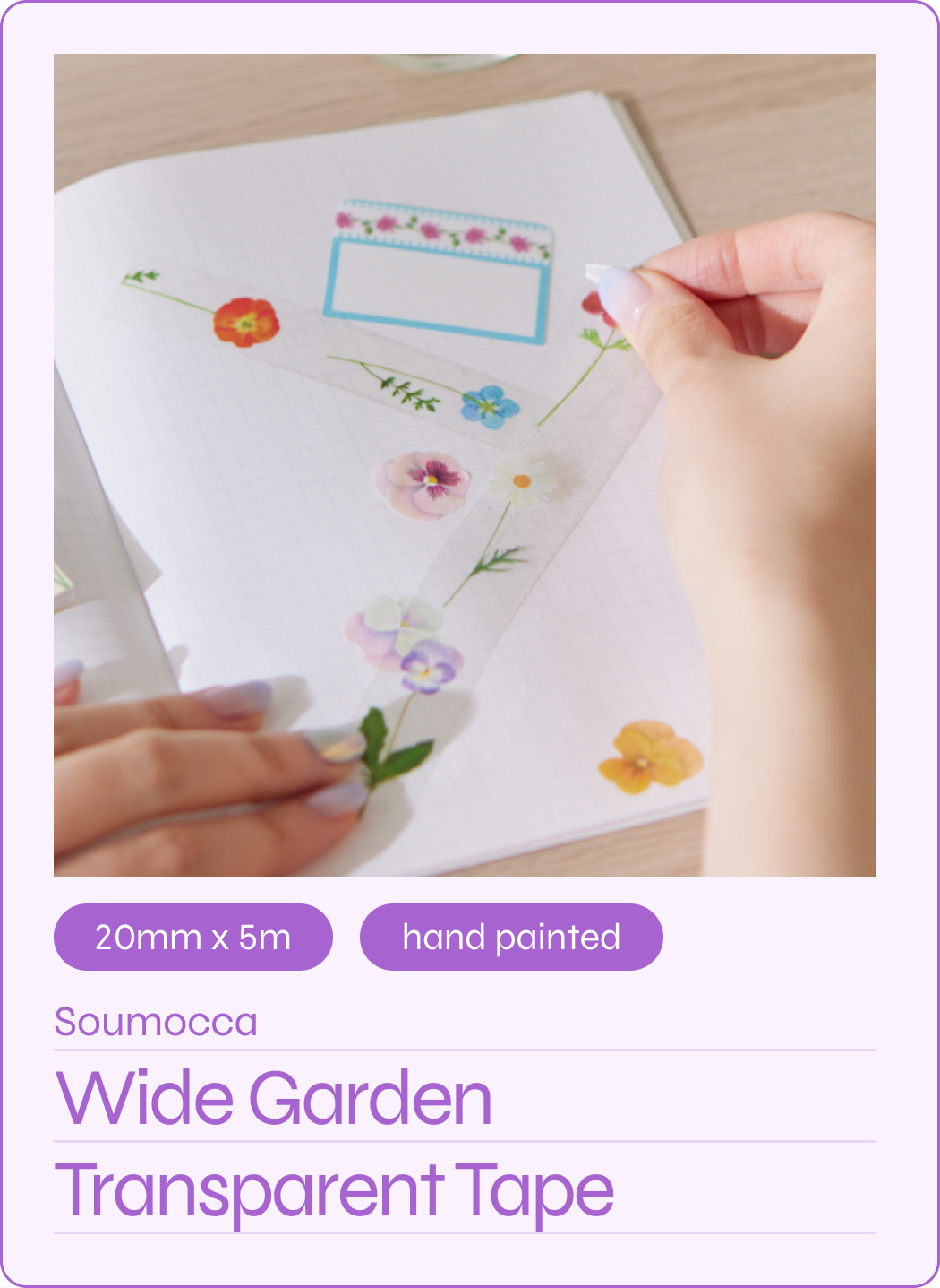 We originally picked this tape for the attention to detail given to the flowers that decorate this clear tape. You can tell RyuRyu really appreciate pressed flowers with the work that’s put into the watercolor recreations adorning the roll.