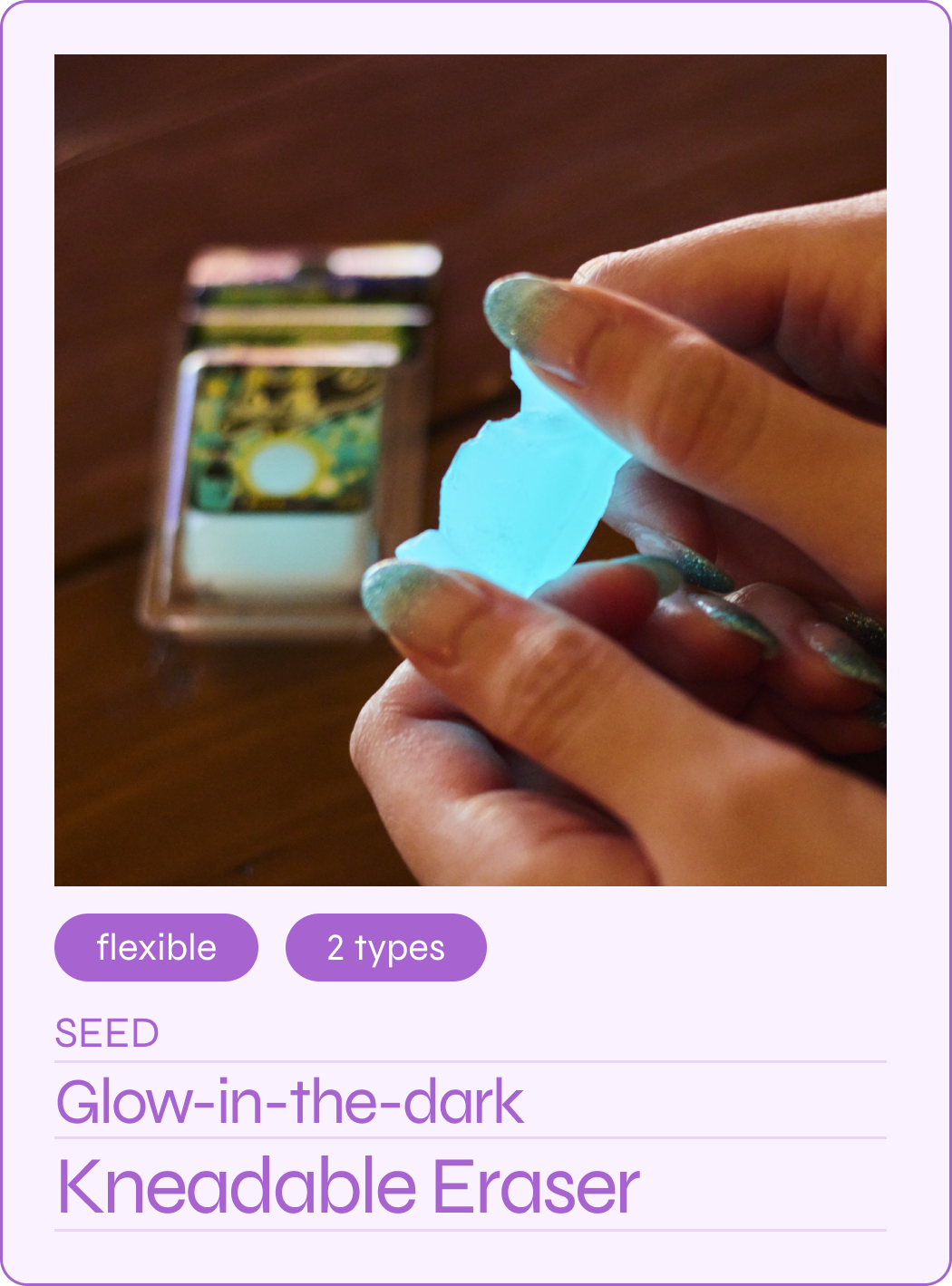 A kneadable glow in the dark eraser. It can be shaped however you like and by exposing it to sunlight, it will illuminate your desk at night. Comes with a convenient box for when it's not in use.