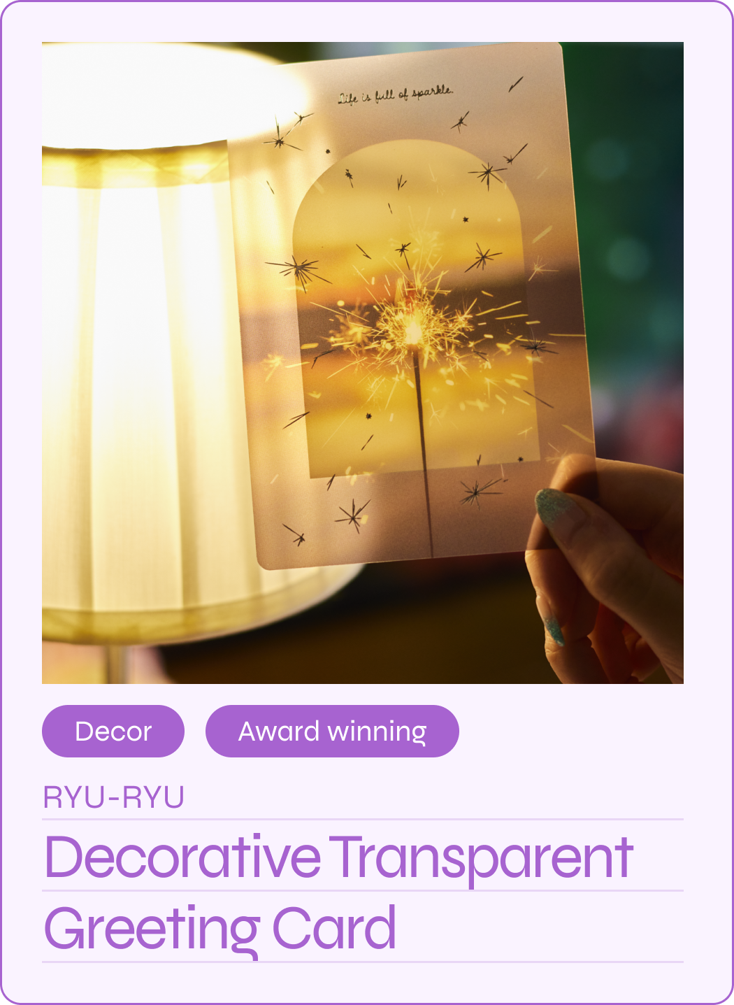 The winner of the card category in 2025 's Stationery Awards. This card is made from thick, clear material with vibrant printing and silver foil all over, giving it an attractive transparency and glossiness.