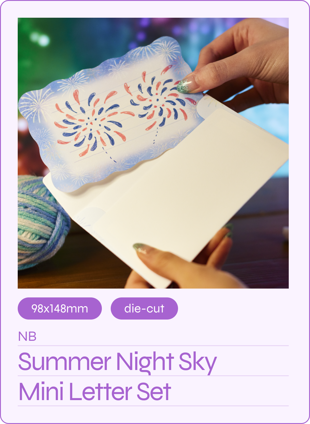 This letter set features a depiction of the night sky filled with the glow of bursting fireworks. It comes with 6 sheets of letter paper and 3 envelopes. The pages are ruled with 5 lines horizontally.