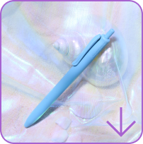 The color and the Möbius strip-esque clip were both chosen to evoke the ocean and the cyclical nature of the material. Inspect the barrel closely, and you’ll find itsy bits of other color microplastics. | ![]() |