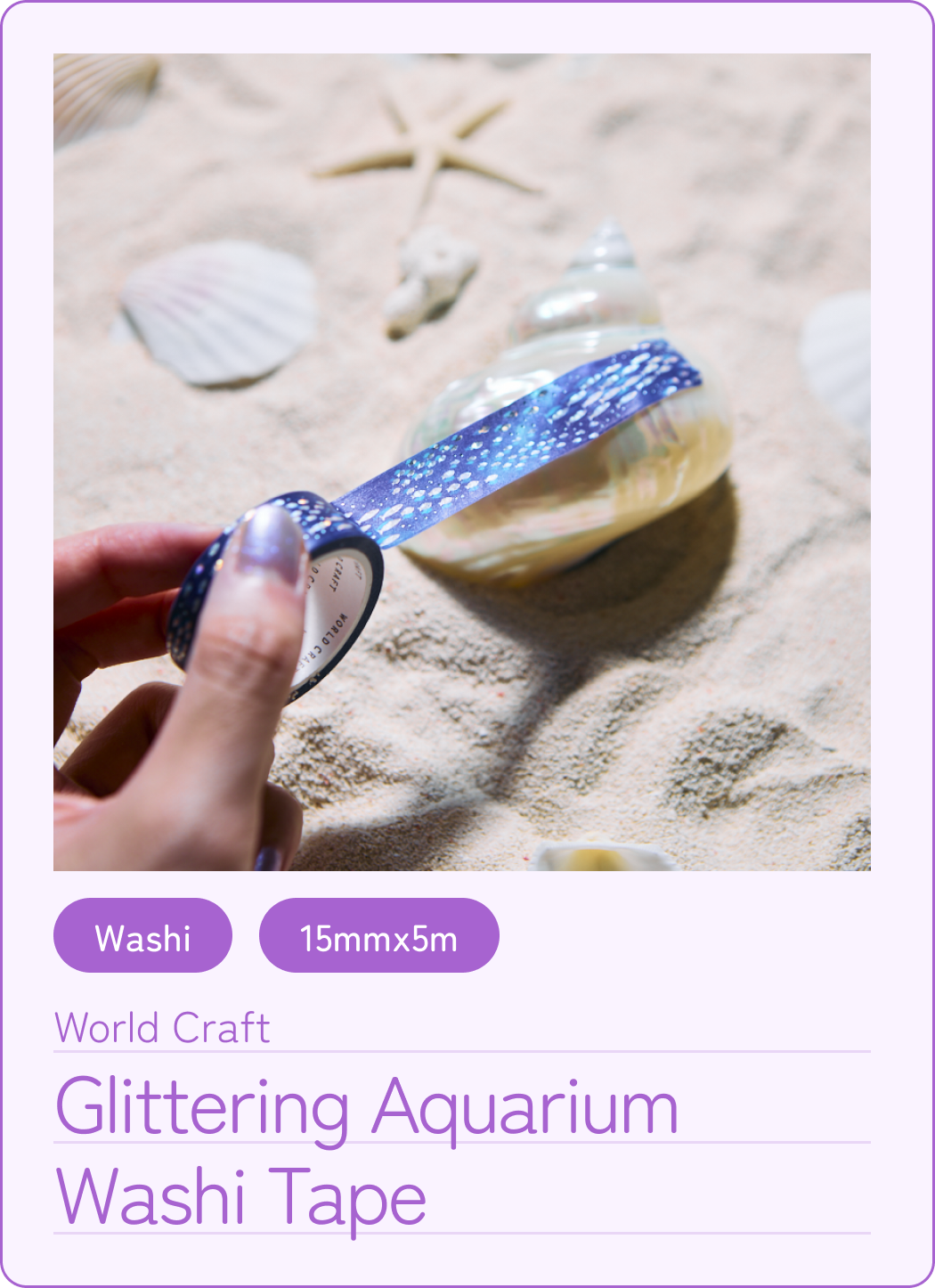 You have to hold this washi tape roll to truly appreciate the detail of the design. Not only is the school of sardines masterfully printed to give the feeling of a sea current, the sparkle in the multilayered foil elevates the design to new heights.