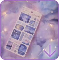 These landscapes with dreamy skies became such popular sticker sheets that they inspired other products from the series, like the clear tape also found in this box.