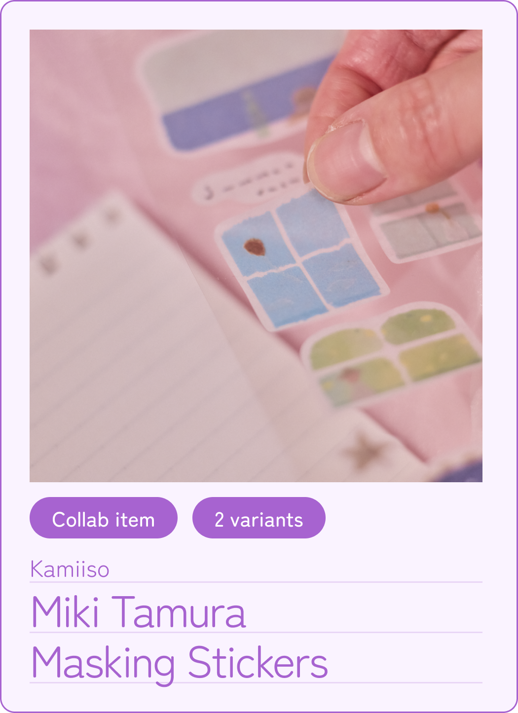 Miki Tamura is an artist and designer who became known for her use of washi tape to create daily life scenes and objects. The sheets in this box are dreamy sentimental designs with either “memories” or “windows”.