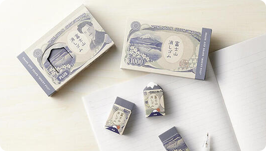 Releasing on Feb 23 for Mt. Fuji Day, PLUS presents a limited Air-In Mt. Fuji Eraser set inspired by the design of Japan’s former ¥1,000 banknote. As you erase, Mt. Fuji slowly appears, turning an everyday action into a small moment of play, packed in a banknote-style box that makes it perfect as a gift or souvenir.